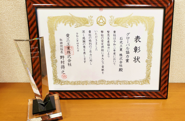 2020年度の当社の愛三工業様に対する、緊急生産協力が認められ