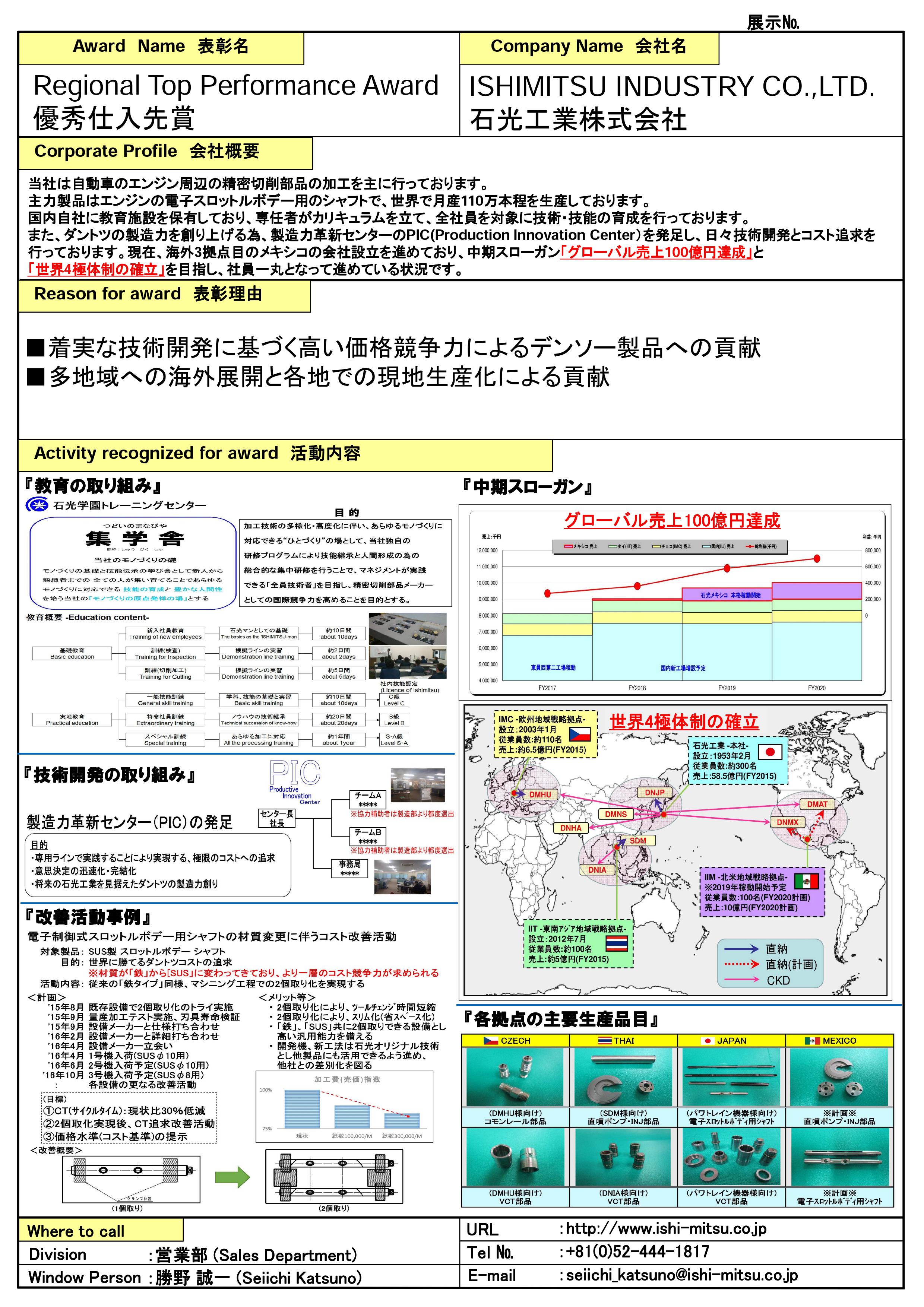 国内地域または海外地域において、品質向上・原価低減・納期対応等の全般に対し、評価を頂きました。