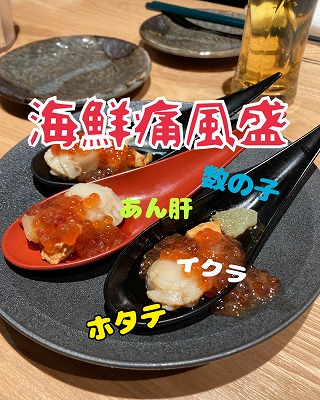 1品目の「名物!海鮮痛風盛」はネーミングも味も最高でした😂